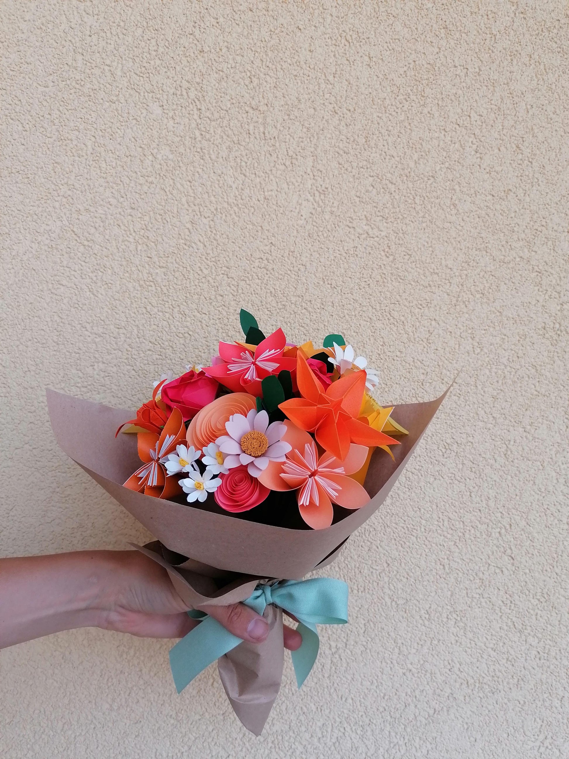 Bouquet di fiori di carta, realizzati a mano con la tecnica dell'origami da carte giapponesi uniche.