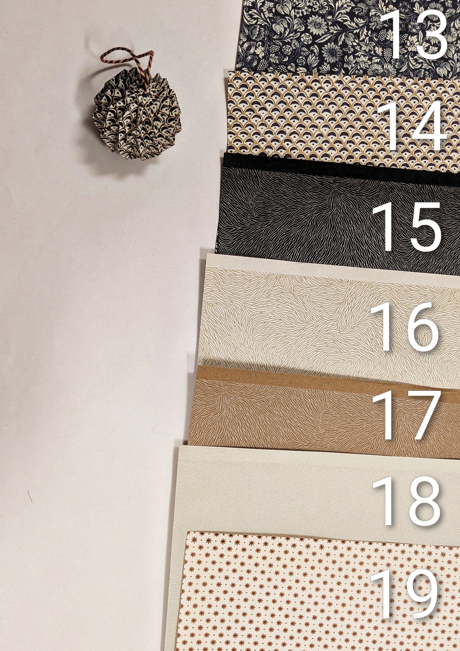Scegli tra un'ampia gamma di fantasie o carte a tinta unita: scrivi semplicemente la tua preferenza nel campo note. Oltre ai motivi presenti nelle foto, è disponibile anche una selezione di carte dai colori allegri e non tradizionali: non esitare a chiedere se preferisci un Natale un po' più colorato!